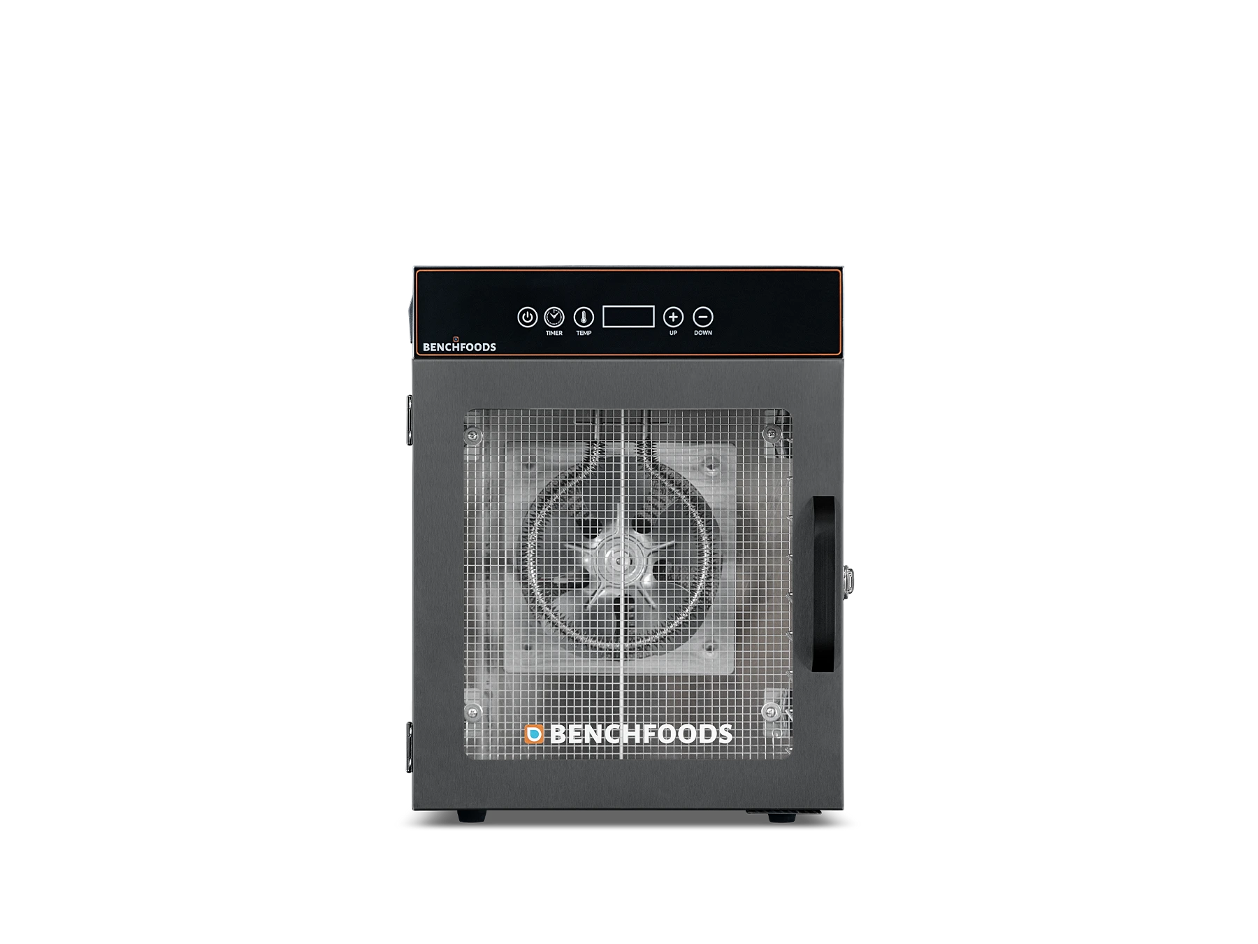This anti-fingerprint black stainless steel dehydrator is designed for ongoing home use with our high-efficiency forced air convection system.